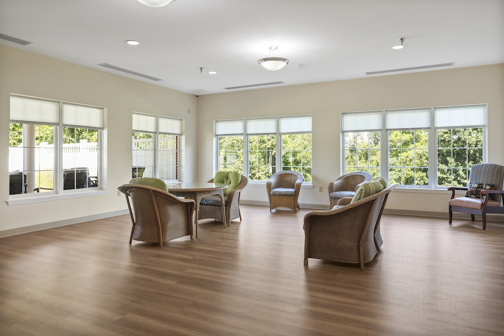 - Sunroom, cozy lounges, and therapeutic activity areas